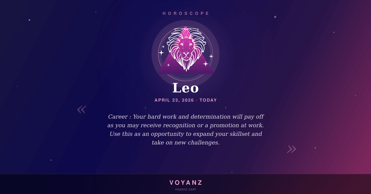 Overall, Leo, the stars are aligned in your favor today. Embrace your natural charisma and use it to achieve your goals and manifest your desires. Enjoy this boost of positivity and make the most of it.