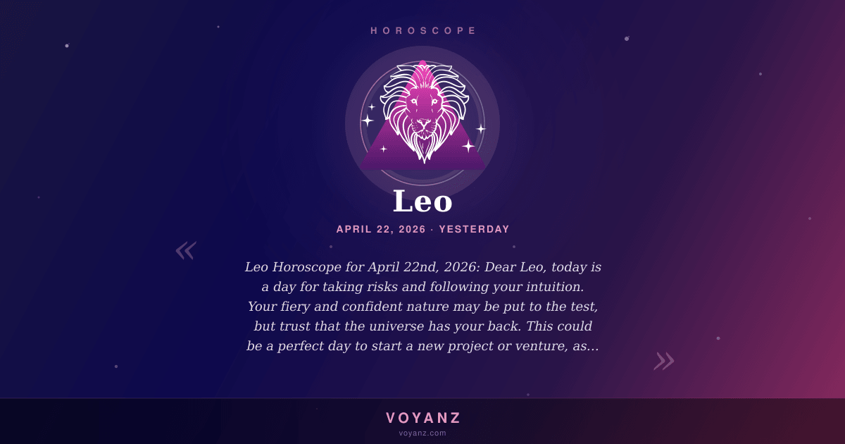 Dear Leo, today is a day for taking risks and following your intuition. Your fiery and confident nature may be put to the test, but trust that the universe has your back. This could be a perfect day to start a new project or venture, as your creativity and determination will be at an all-time high. However, be mindful of being too impulsive - it's important to carefully weigh the pros and cons before making any major decisions. Your natural charm and charisma will also be on full display today, so don't be afraid to use it to your advantage. And remember, sometimes the biggest risks bring the greatest rewards. Embrace the unknown and trust that everything will work out in your favor.