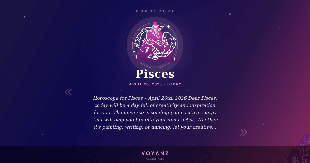 Dear Pisces, today will be a day full of creativity and inspiration for you. The universe is sending you positive energy that will help you tap into your inner artist. Whether it's painting, writing, or dancing, let your creative juices flow and express yourself freely.
