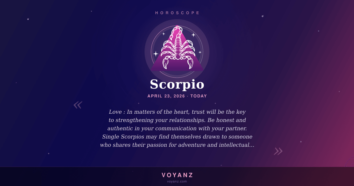In matters of the heart, trust will be the key to strengthening your relationships. Be honest and authentic in your communication with your partner. Single Scorpios may find themselves drawn to someone who shares their passion for adventure and intellectual stimulation.