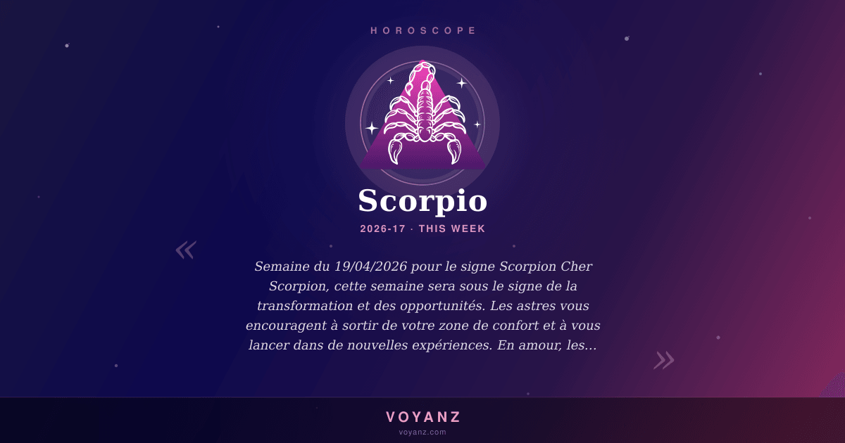 Cher Scorpion, cette semaine sera sous le signe de la transformation et des opportunités. Les astres vous encouragent à sortir de votre zone de confort et à vous lancer dans de nouvelles expériences.
