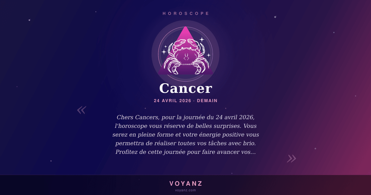 En résumé, la journée du 24 avril 2026 sera placée sous le signe de l'harmonie et du bonheur pour les Cancers. Profitez-en pour avancer vers vos objectifs et pour cultiver les relations qui vous sont chères.