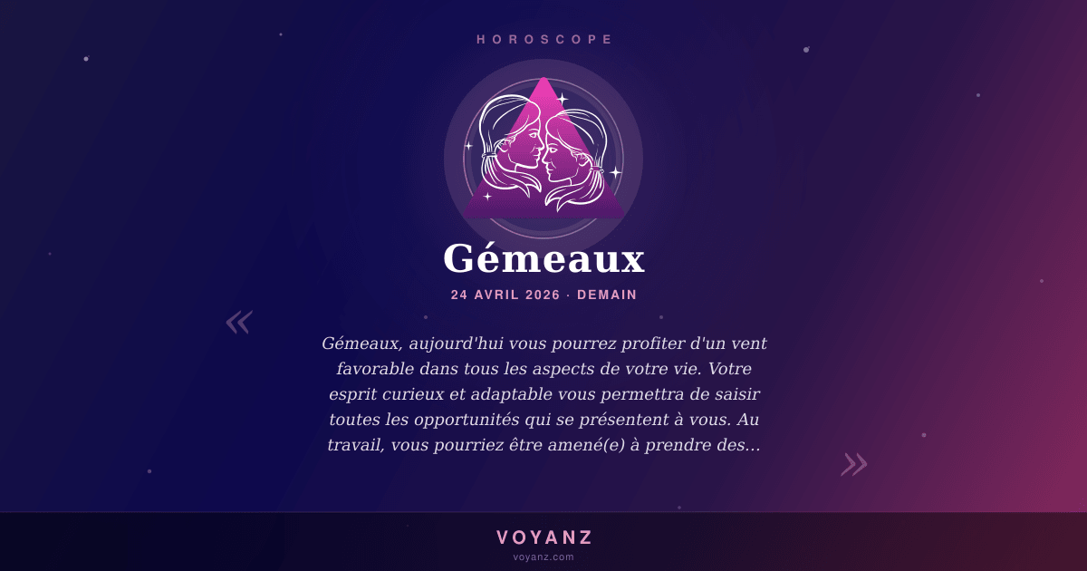 En résumé, cette journée s'annonce riche en opportunités pour les Gémeaux. Saisissez-les avec confiance et optimisme et vous verrez de belles choses se concrétiser dans votre vie. Profitez également de vos proches, ils seront sources de réconfort et de bonheur.
