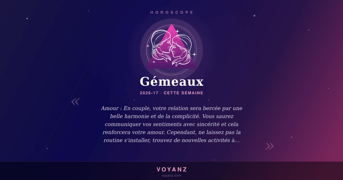 Cette semaine, les Gémeaux seront à l'honneur avec de nombreuses opportunités qui se présenteront à eux. Profitez de cette période pour avancer dans vos projets et prendre des décisions importantes.