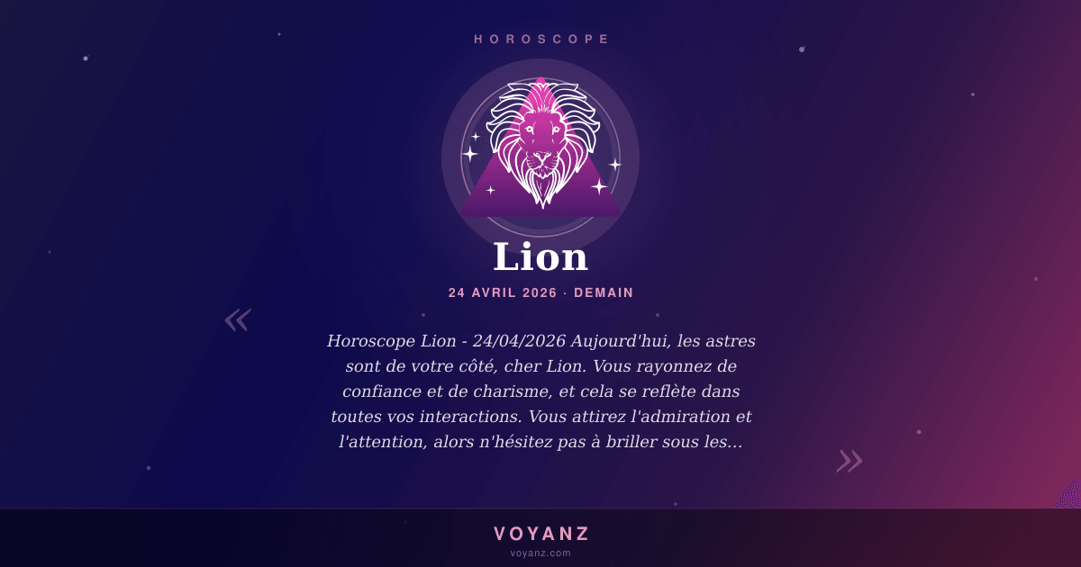 En résumé, ce 24 avril 2026 est une excellente journée pour les Lions qui peuvent s'attendre à des nouveautés et à des réussites dans tous les domaines de leur vie. Restez fidèle à vous-même et continuez à briller comme vous le faites si bien.