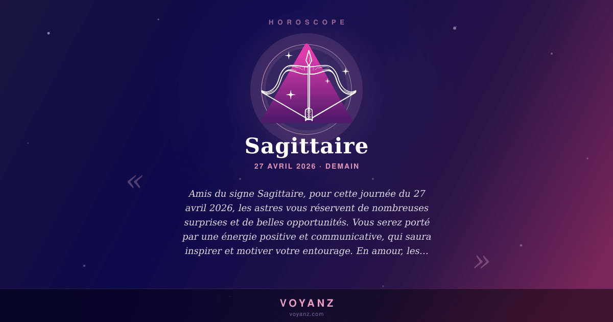 En résumé, ce 27 avril 2026 s'annonce comme une journée positive et remplie de belles surprises pour les Sagittaires. Profitez de cette bonne dynamique pour faire avancer vos projets et pour vivre pleinement le