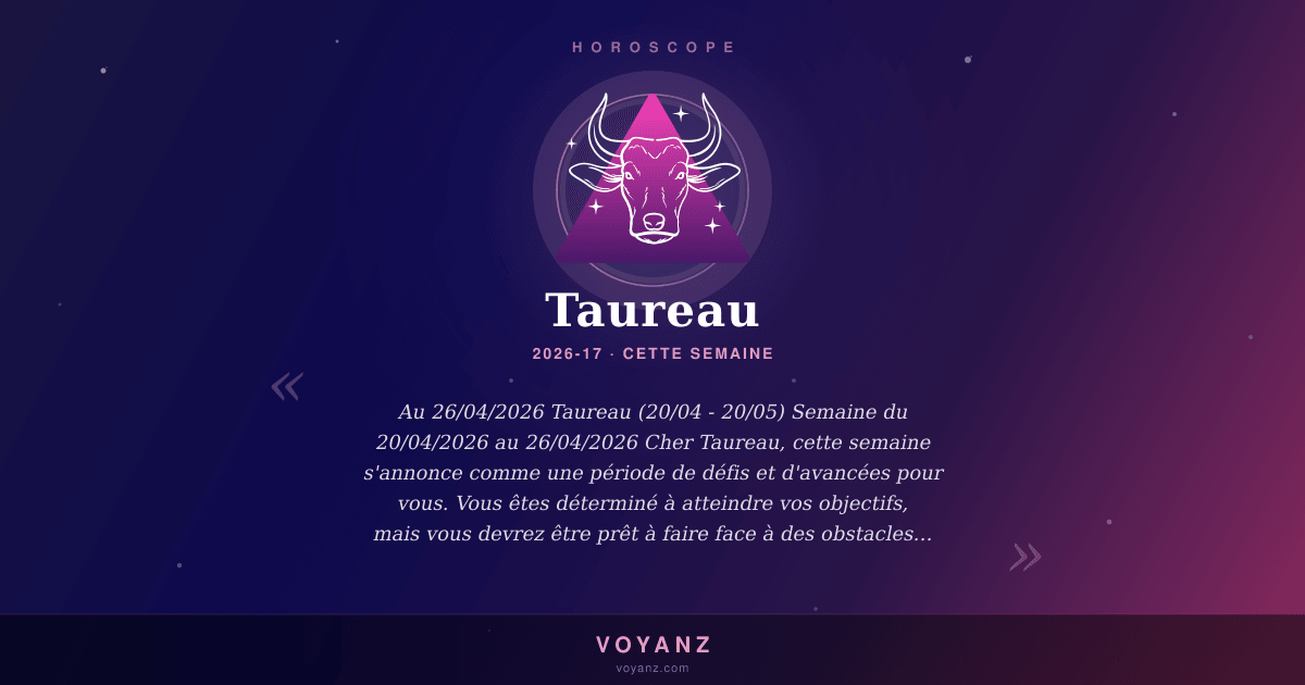 Cher Taureau, cette semaine s'annonce comme une période de défis et d'avancées pour vous. Vous êtes déterminé à atteindre vos objectifs, mais vous devrez être prêt à faire face à des obstacles et à être patient.